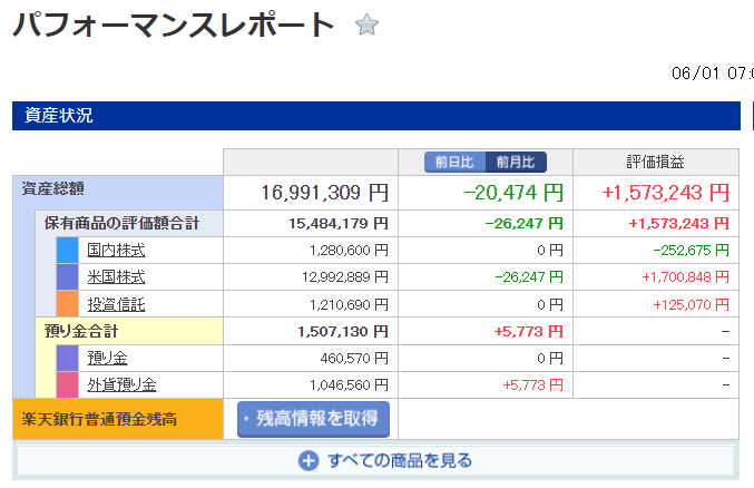 さて、5月も終わりましたので、資産状況報告します。株式市場が一時期かなり下げましたが、また持ち直しているため、結果的には5月は4月から微減で終わっています。